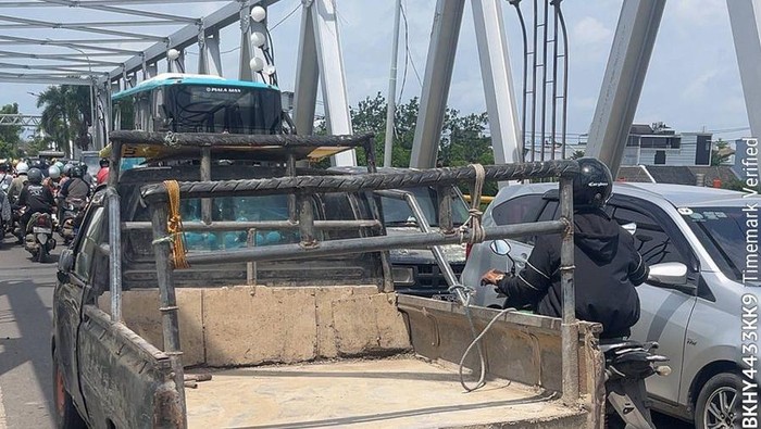 Dari video beredar, sebuah mobil pikap mogok dievakuasi oleh warga dari jembatan. Mobil tersebut terpaksa diangkat oleh sejumlah warga karena usai mengalami kerusakan di bagian roda belakang.