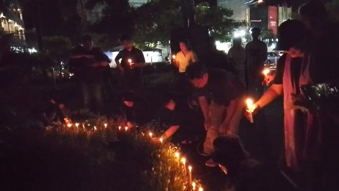 Aksi tersebut berlangsung di Tugu Wolter Monginsidi dan Pierre Tendean, Kota Manado, Senin (12/1/2026). Aksi diawali dengan pemasangan lilin oleh para peserta yang disusun melingkari taman tugu.