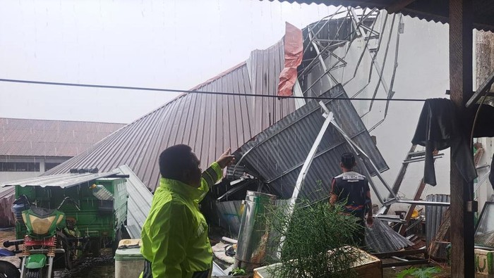 “Telah terjadi hujan deras yang disertai angin kencang, pada saat kejadian, saksi melihat atap gudang tiba-tiba terangkat dan sebagian terbongkar akibat tiupan angin puting beliung,” kata Syamsir.