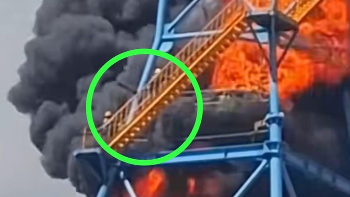 “(Hingga) menyebabkan seorang pekerja, La Osi Adi, terjebak di posisi tertinggi,” terangnya.