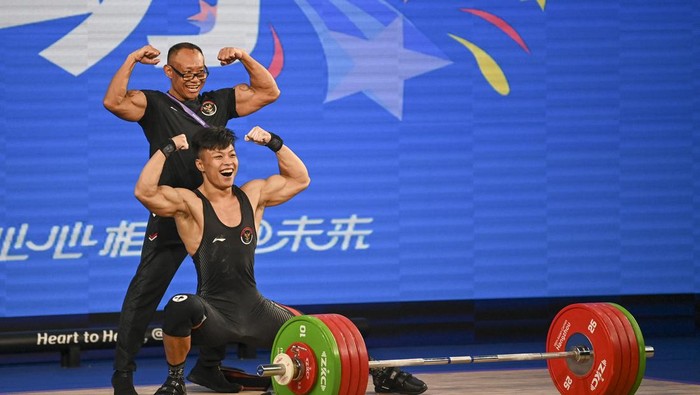 Saat PON XXI Aceh-Sumut 2024, Rahmat Erwin Abdullah mempersembahkan medali mas di kelas 73 Kg angkat besi.