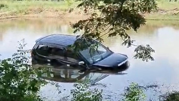 Sesampainya di TKP, mobil tersebut mendadak hilang kendali. Kendaraan kemudian bergerak ke kiri jalan dan terjun ke empang.