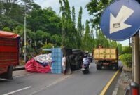Truk Muat 10 Ton Dedak Terbalik di Depan Kantor Bupati Maros