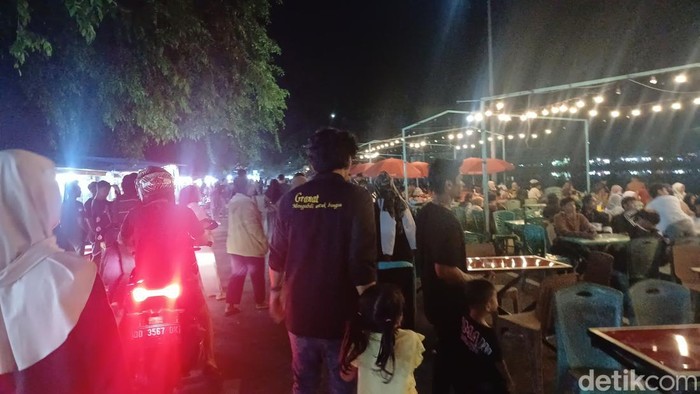 Pedagang kuliner pun tampak sibuk melayani pengunjung yang silih berganti. Selain berburu kuliner, beberapa pengunjung juga tampak membeli kembang api dan mainan anak-anak.